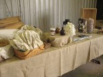 A mad scramble commenced and decorations, candles, musical instruments, wine barrels, chairs, tables, and glasses were hauled down the hillside into the barn…in the rain…the barn never looked so good. I must say the most clever thing I saw was my F.G. Peeps (Fondue Gang, yeah that’s right, we be fer reals, yo) Audrey & Kristin, roll out white butcher paper to make an aisle and then threaten ANYONE who stepped on it…don’t be messing with F.G., we mean business!