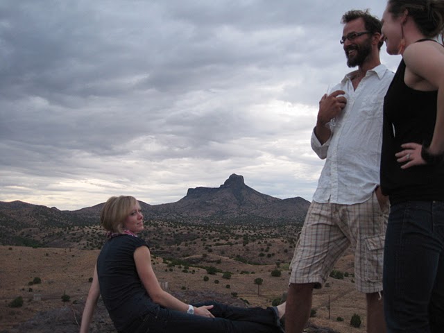 Audrey, Eric, Kristin, Cathedral Mt. & wine.