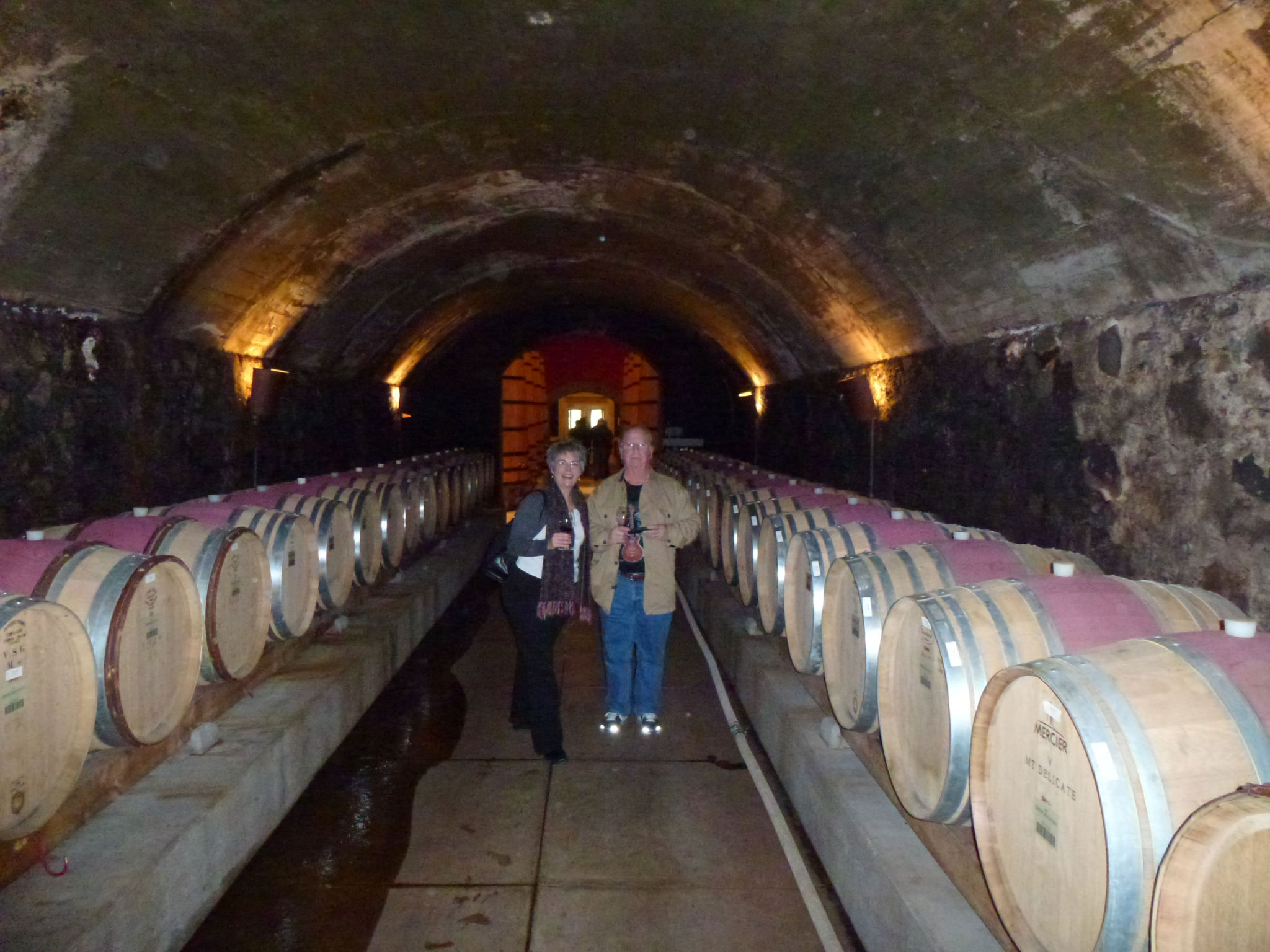 Sully & I with a lot of wine barrels in older part of the cave